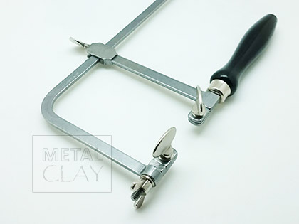 Gesztelka. Chromowana ramka (oprawka) do brzeszczotów 100mm z drewnianą rączką i „motylkami”.
