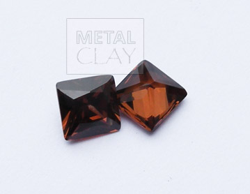 Cyrkonia kwadratowa, wielkość 5x5mm, granat naturalny. Można wypalać razem z produktami Art Clay, Bronz Clay itp. lub oprawiać w oprawy do cyrkonii (p. dodatki 999) lub w srebro i inne metale.