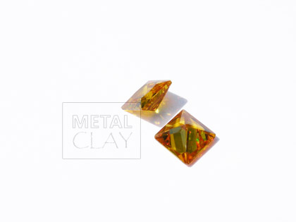 Cyrkonia kwadratowa, wielkość 8x8mm, kolor żółty. Można wypalać razem z produktami Art Clay, Bronz Clay itp. lub oprawiać w oprawy do cyrkonii (p. dodatki 999) lub w srebro i inne metale.
