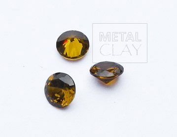Cyrkonia okrągła, średnica 4 mm, kolor kawa. Można wypalać razem z produktami Art Clay, Bronz Clay itp. lub oprawiać w oprawy do cyrkonii (p. dodatki 999) lub w srebro i inne metale.