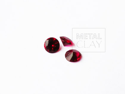 Cyrkonia (corund) okrągła, średnica 8 mm, kolor rubin. Można wypalać razem z produktami Art Clay, Bronz Clay itp. lub oprawiać w oprawy do cyrkonii (p. dodatki 999) lub w srebro i inne metale.
