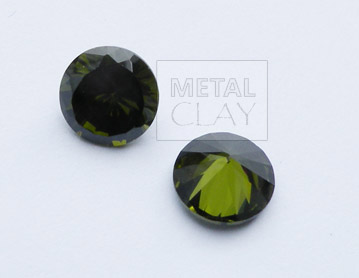 Cyrkonia okrągła, średnica 8 mm, kolor oliwin. Można wypalać razem z produktami Art Clay, Bronz Clay itp. lub oprawiać w oprawy do cyrkonii (p. dodatki 999) lub w srebro i inne metale.