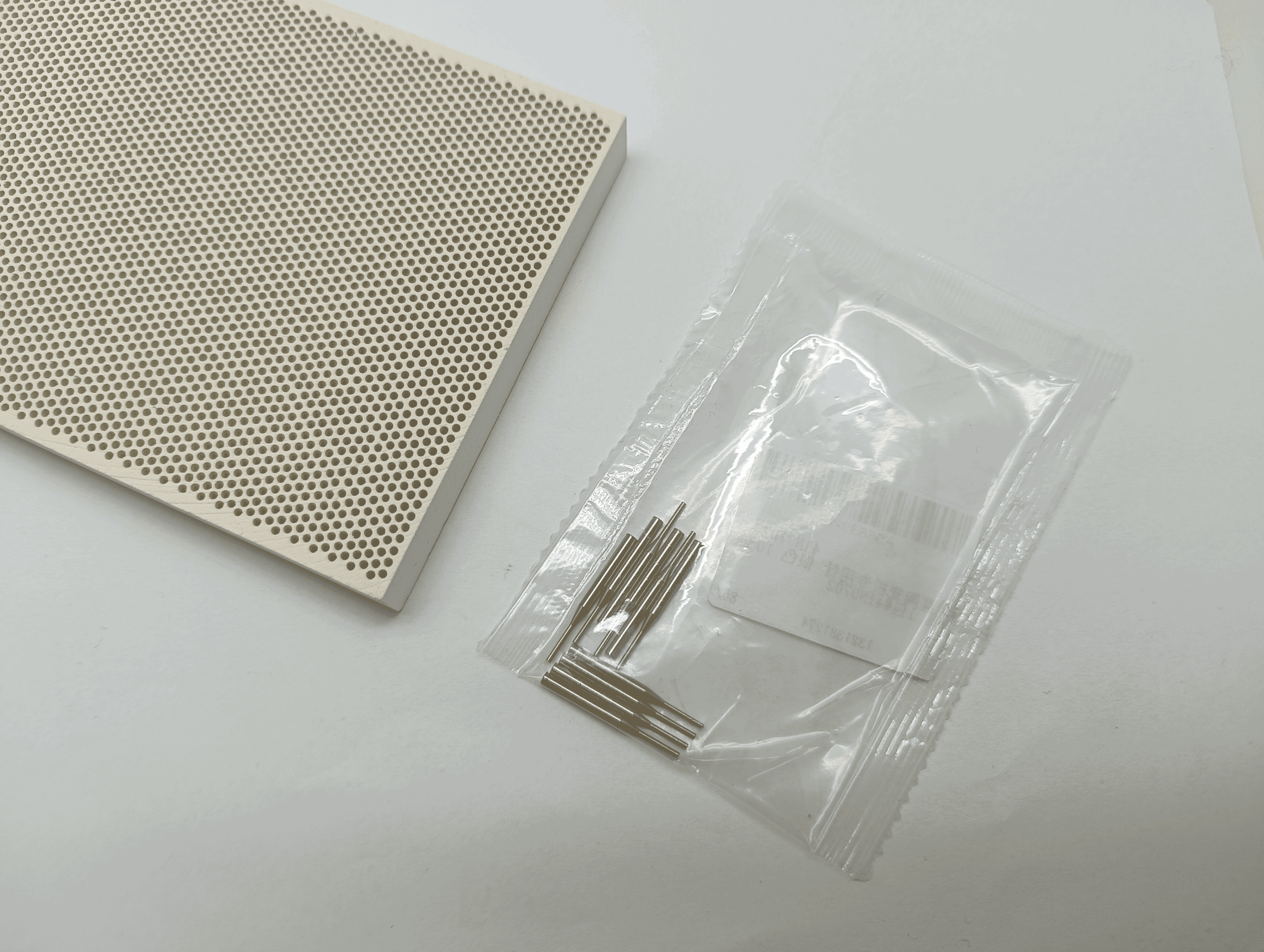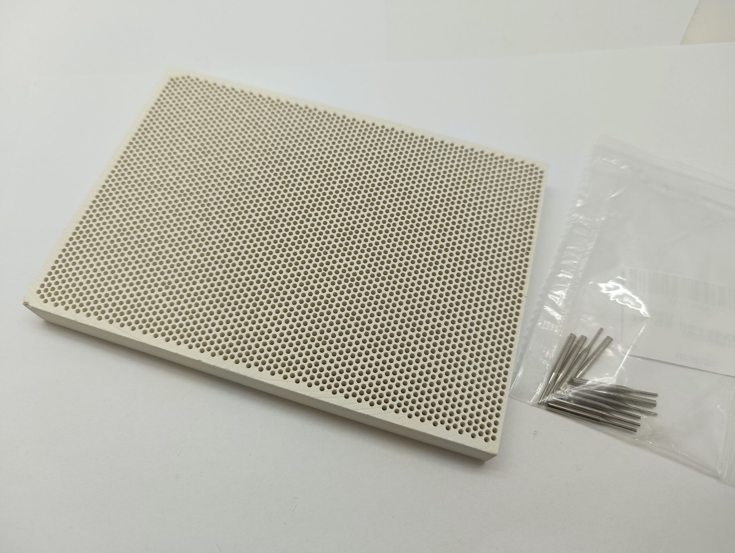 Lekka, mała płytka ceramiczna, perforowana.