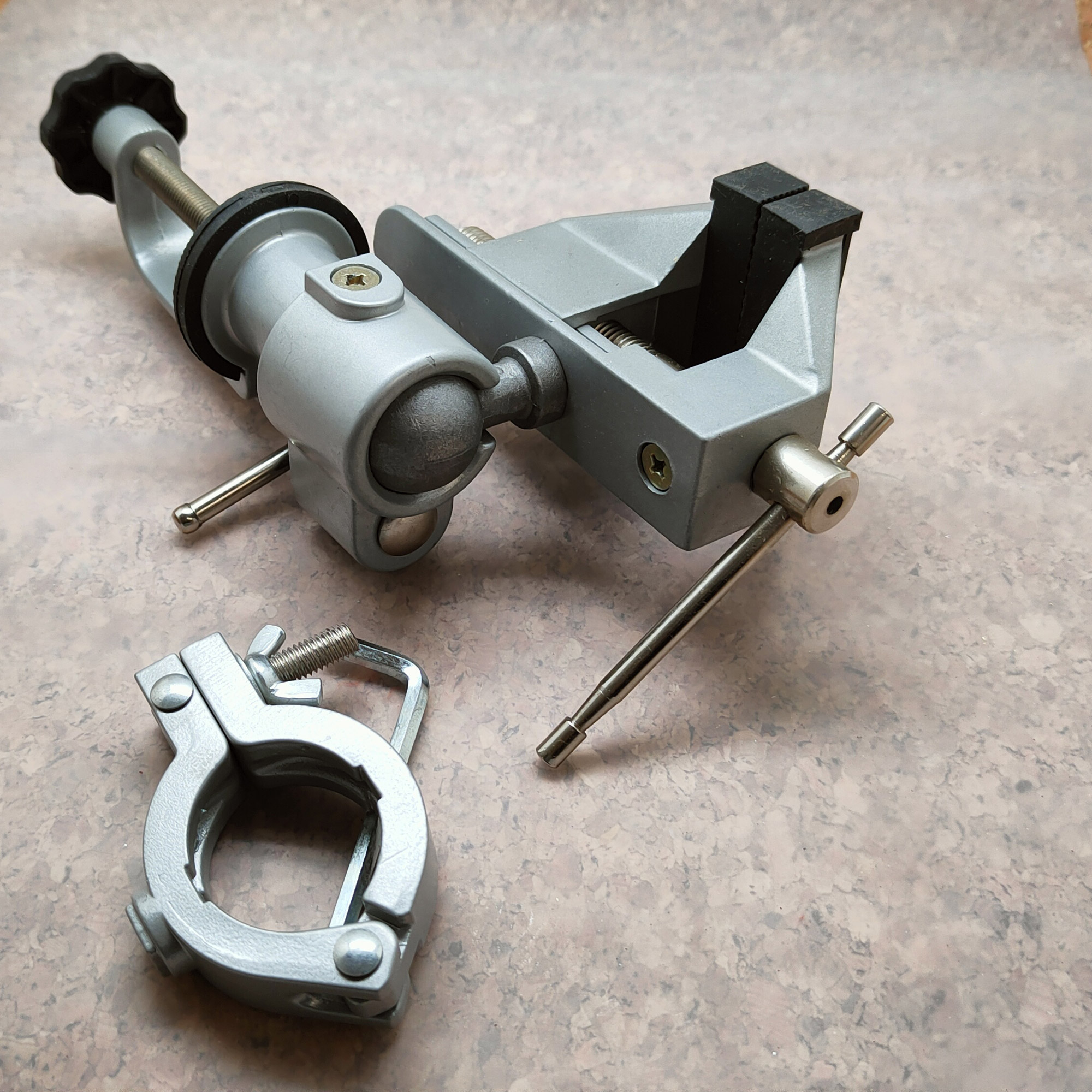 Imadło modelarskie aluminiowe 75mm z przegubem. Szczęki zaopatrzone w gumowe nakładki.