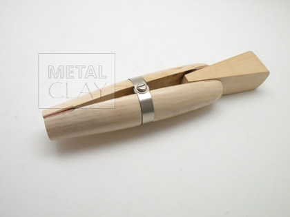 Kluba drewniana z klinem. Pomaga utrzymać i obrabiać metalowe elementy niewielkich rozmiarów.